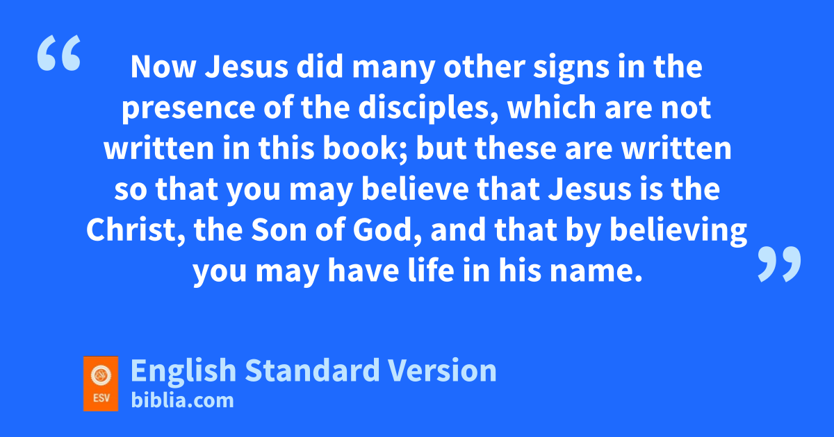 30 uNow Jesus did many other signs vin the presence of the disciples, which are not written in this book; 31 wbut these are written so that you may xbelieve that Jesus is the Christ, ythe Son of God, and that by believing zyou may have life ain his name.