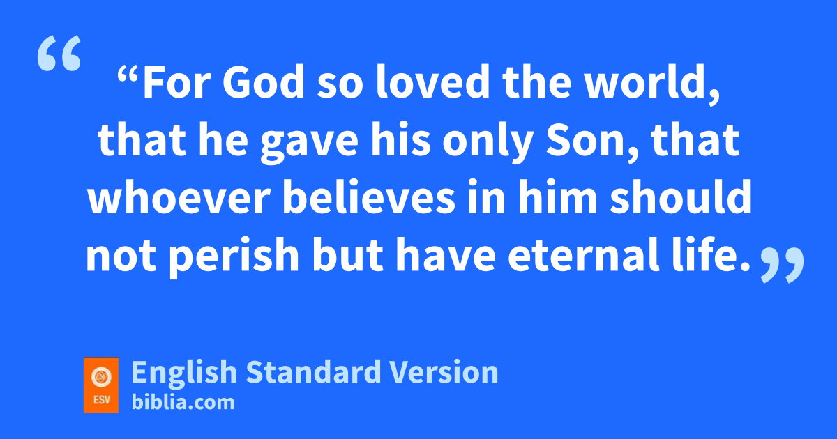 16 “For hGod so loved ithe world,9 jthat he gave his only Son, that whoever believes in him should not kperish but have eternal life. 17 For lGod did not send his Son into the world mto condemn the world, but in order that the world might be saved through him. 18 nWhoever believes in him is not condemned, but whoever does not believe is condemned already, because he has not obelieved in the name of the only Son of God. 19 pAnd this is the judgment: qthe light has come into the world, and rpeople loved the darkness rather than the light because stheir works were evil. 20 tFor everyone who does wicked things hates the light and does not come to the light, ulest his works should be exposed. 21 But whoever vdoes what is true wcomes to the light, so that it may be clearly seen that his works have been carried out in God.”