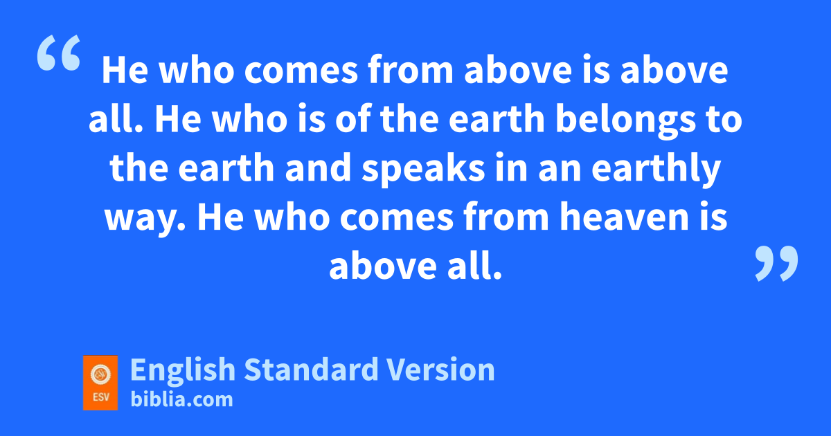 31 mHe who comes from above nis above all. He who is of the earth belongs to the earth and ospeaks in an earthly way. pHe who comes from heaven nis above all. 32 qHe bears witness to what he has seen and heard, ryet no one receives his testimony. 33 Whoever receives his testimony ssets his seal to this, tthat God is true. 34 For he whom uGod has sent utters the words of God, for he gives the Spirit vwithout measure. 35 wThe Father loves the Son and xhas given all things into his hand. 36 yWhoever believes in the Son has eternal life; zwhoever does not obey the Son shall not asee life, but the wrath of God remains on him.