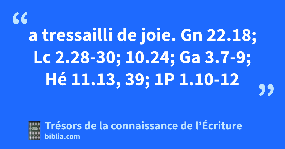 a tressailli de joie. Gn 22.18; Lc 2.28-30; 10.24; Ga 3.7-9; Hé 11.13, 39; 1P 1.10-12
