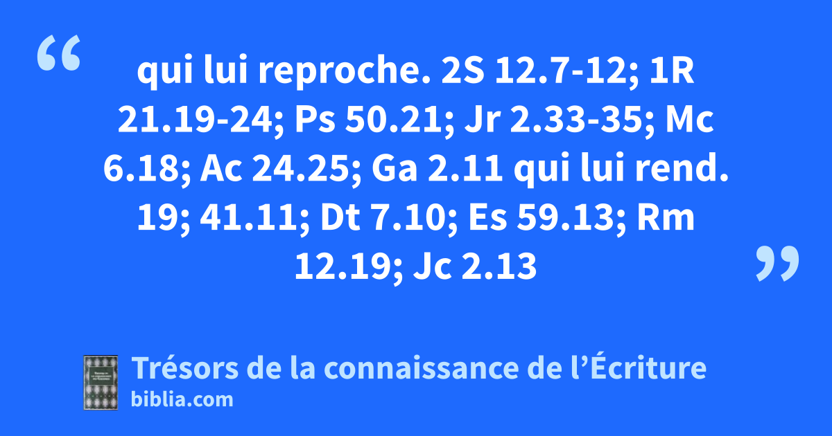 qui lui reproche. 2S 12.7-12; 1R 21.19-24; Ps 50.21; Jr 2.33-35; Mc 6.18; Ac 24.25; Ga 2.11 qui lui rend. 19; 41.11; Dt 7.10; Es 59.13; Rm 12.19; Jc 2.13