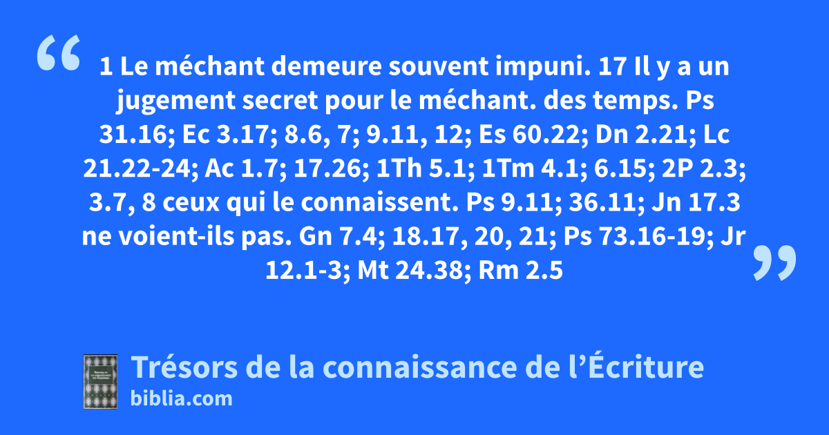 1 Le méchant demeure souvent impuni. 17 Il y a un jugement secret pour le méchant.