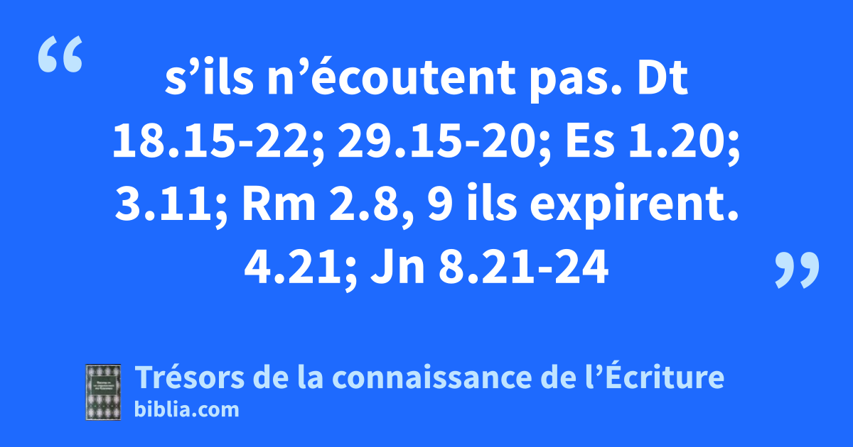 s’ils n’écoutent pas. Dt 18.15-22; 29.15-20; Es 1.20; 3.11; Rm 2.8, 9 ils expirent. 4.21; Jn 8.21-24