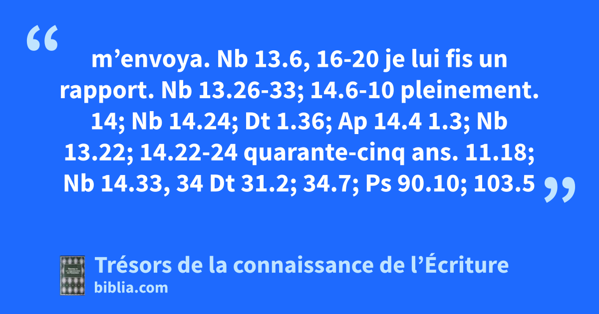 m’envoya. Nb 13.6, 16-20 je lui fis un rapport. Nb 13.26-33; 14.6-10