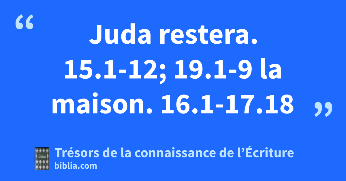 Juda restera. 15.1-12; 19.1-9 la maison. 16.1-17.18