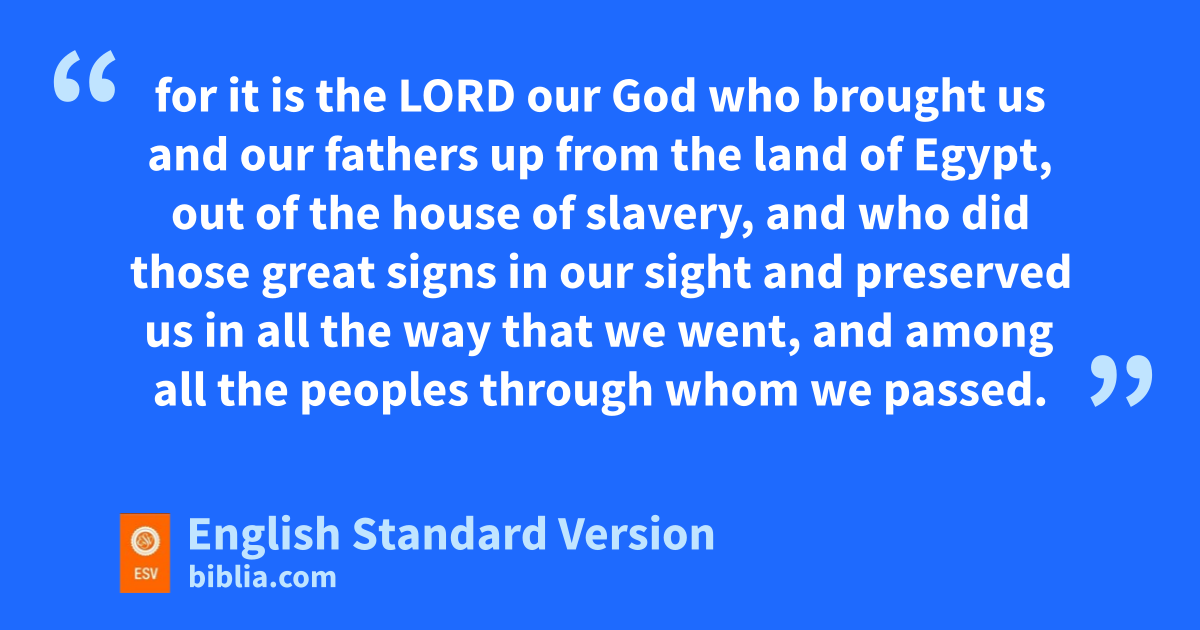 6 “ ‘Then pI brought your fathers out of Egypt, and qyou came to the sea. rAnd the Egyptians pursued your fathers with chariots and horsemen to the Red Sea. 7 sAnd when they cried to the Lord, the put darkness between you and the Egyptians uand made the sea come upon them and cover them; vand your eyes saw what I did in Egypt. wAnd you lived in the wilderness a long time. 8 Then I brought you to the land of the Amorites, who lived on the other side of the Jordan. xThey fought with you, and I gave them into your hand, and you took possession of their land, and I destroyed them before you. 9 yThen Balak the son of Zippor, king of Moab, arose and fought against Israel. zAnd he sent and invited Balaam the son of Beor to curse you, 10 abut I would not listen to Balaam. aIndeed, he blessed you. So I delivered you out of his hand. 11 bAnd you went over the Jordan and came to Jericho, cand the leaders of Jericho fought against you, and also cthe Amorites, the Perizzites, the Canaanites, the Hittites, the Girgashites, the Hivites, and the Jebusites. And I gave them into your hand. 12 And I sent dthe hornet before you, which drove them out before you, the two kings of the Amorites; it was enot by your sword or by your bow. 13 I gave you a land on which you had not labored fand cities that you had not built, and you dwell in them. You eat the fruit of vineyards and olive orchards that you did not plant.’