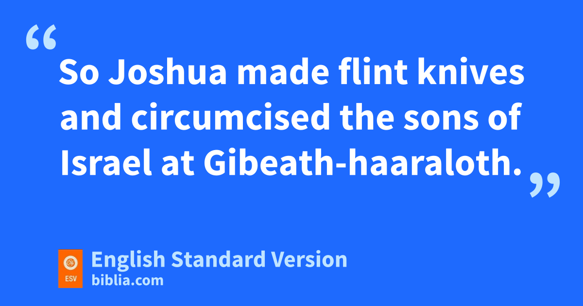 2 At that time the Lord said to Joshua, “Make sflint knives and circumcise the sons of Israel a second time.” 3 So Joshua made flint knives and circumcised the sons of Israel at Gibeath-haaraloth.1 4 And this is the reason why Joshua circumcised them: tall the males of the people who came out of Egypt, all the men of war, had died in the wilderness on the way after they had come out of Egypt. 5 Though all the people who came out had been circumcised, yet all the people who were born on the way in the wilderness after they had come out of Egypt had not been circumcised. 6 For the people of Israel walked uforty years in the wilderness, until all the nation, the men of war who came out of Egypt, perished, because they did not obey the voice of the Lord; the Lord vswore to them that he would not let them see the land that the Lord had sworn to their fathers to give to us, wa land flowing with milk and honey. 7 So it was xtheir children, whom he raised up in their place, that Joshua circumcised. For they were uncircumcised, because they had not been circumcised on the way.