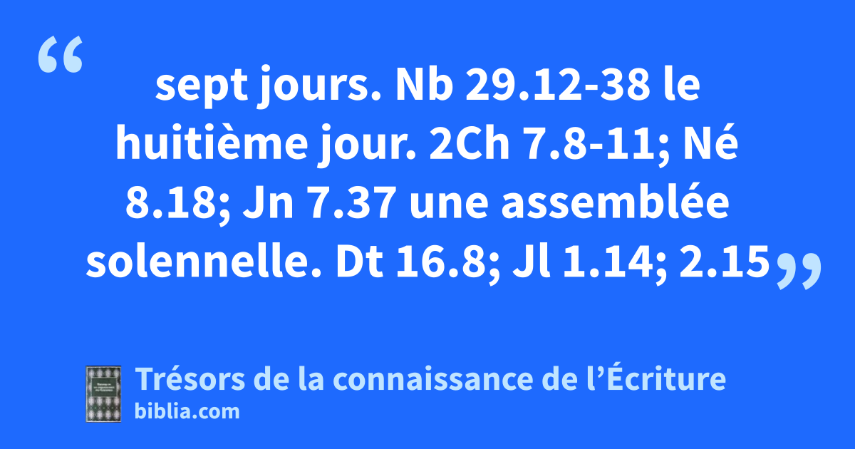sept jours. Nb 29.12-38 le huitième jour. 2Ch 7.8-11; Né 8.18; Jn 7.37 une assemblée solennelle. Dt 16.8; Jl 1.14; 2.15