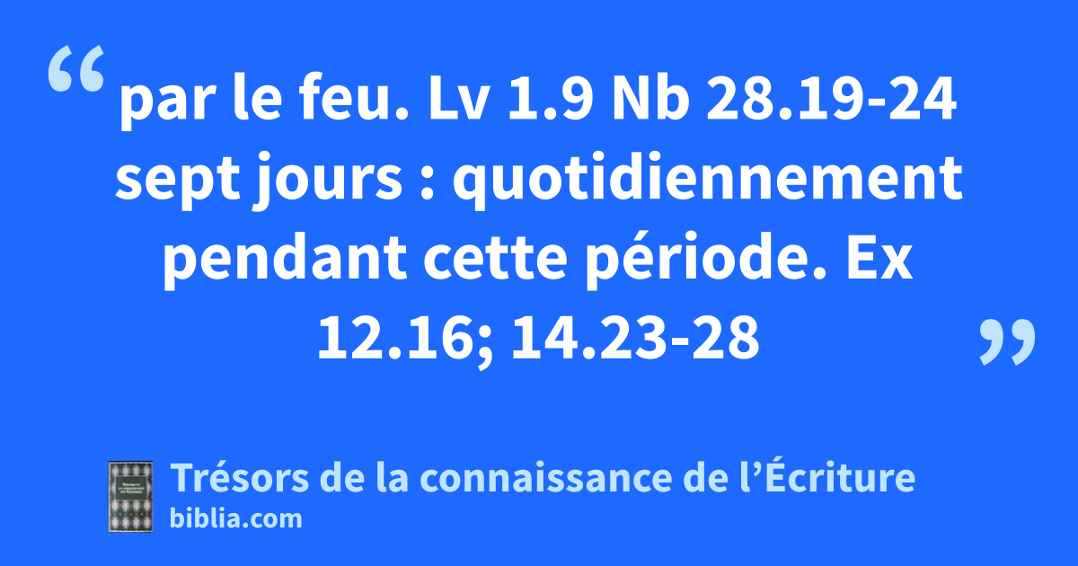 par le feu. Lv 1.9 Nb 28.19-24 sept jours : quotidiennement pendant cette période. Ex 12.16; 14.23-28