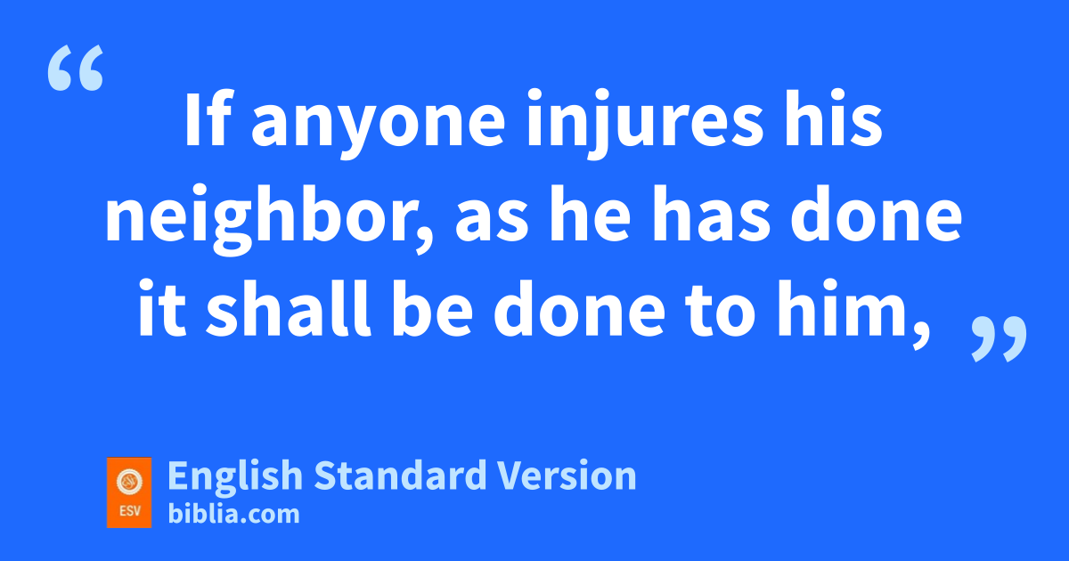 17 r“Whoever takes a human life shall surely be put to death. 18 sWhoever takes an animal’s life shall make it good, life for life. 19 If anyone injures his neighbor, tas he has done it shall be done to him, 20 fracture for fracture, eye for eye, tooth for tooth; whatever injury he has given a person shall be given to him. 21 sWhoever kills an animal shall make it good, rand whoever kills a person shall be put to death. 22 You shall have the usame rule for the sojourner and for the native, for I am the Lord your God.” 23 So Moses spoke to the people of Israel, and vthey brought out of the camp the one who had cursed and stoned him with stones. Thus the people of Israel did as the Lord commanded Moses.
