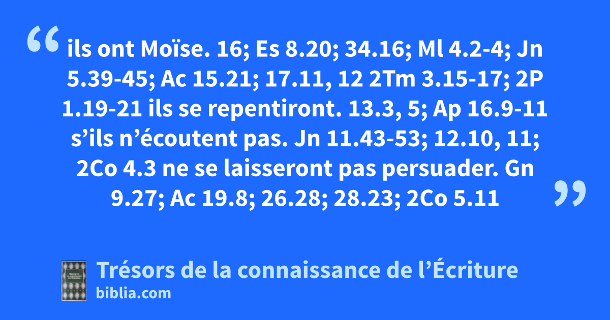 ils ont Moïse. 16; Es 8.20; 34.16; Ml 4.2-4; Jn 5.39-45; Ac 15.21; 17.11, 12 2Tm 3.15-17; 2P 1.19-21