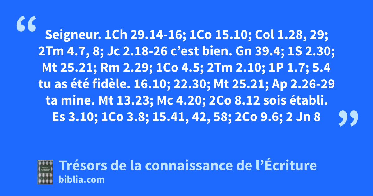 Seigneur. 1Ch 29.14-16; 1Co 15.10; Col 1.28, 29; 2Tm 4.7, 8; Jc 2.18-26