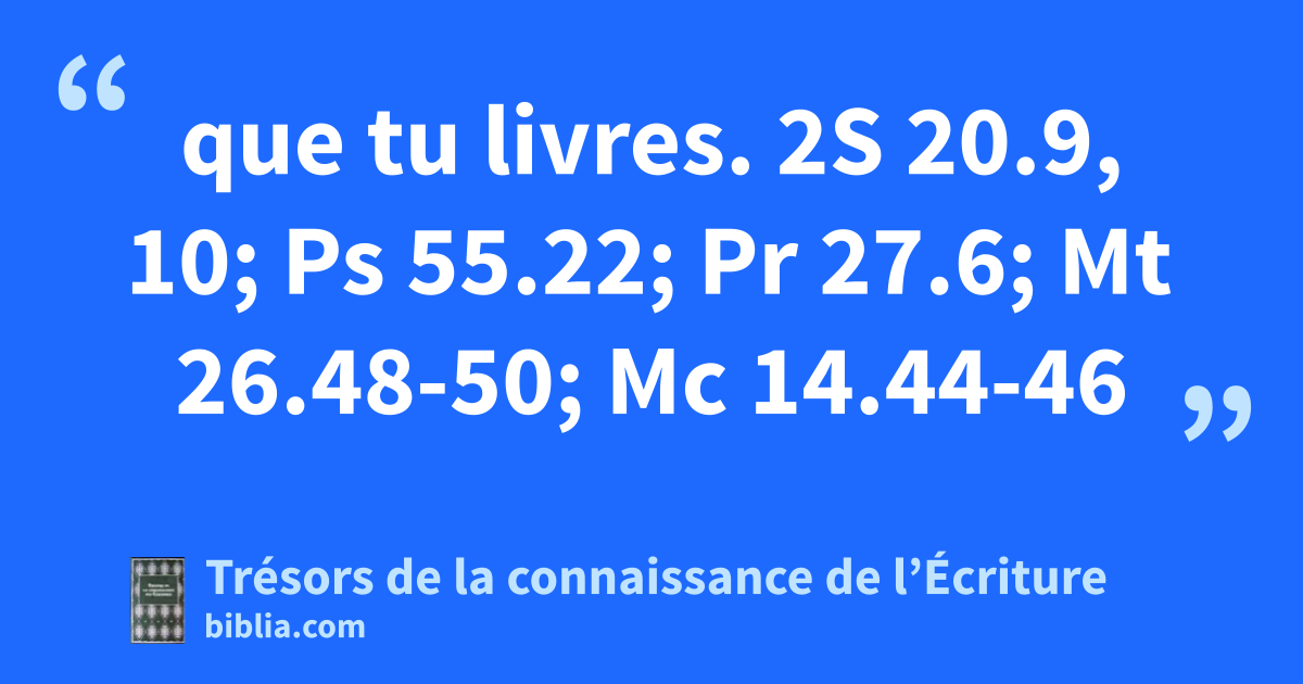 que tu livres. 2S 20.9, 10; Ps 55.22; Pr 27.6; Mt 26.48-50; Mc 14.44-46
