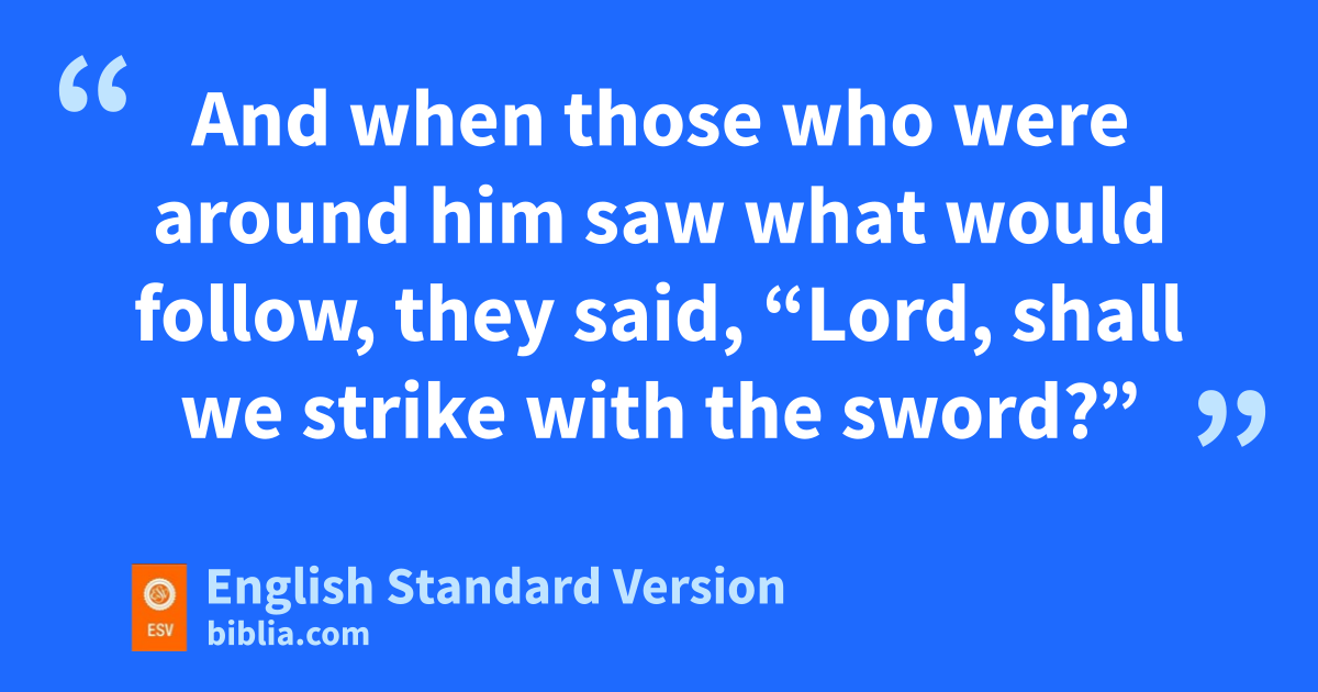 35 And he said to them, i“When I sent you out with no moneybag or knapsack or sandals, did you lack anything?” They said, “Nothing.” 36 He said to them, “But now let the one who has a moneybag take it, and likewise a knapsack. And let the one who has no sword sell his cloak and buy one. 37 For I tell you that jthis Scripture must be fulfilled in me: k‘And he was numbered with the transgressors.’ For lwhat is written about me has its fulfillment.” 38 And they said, “Look, Lord, here are two mswords.” And he said to them, n“It is enough.”