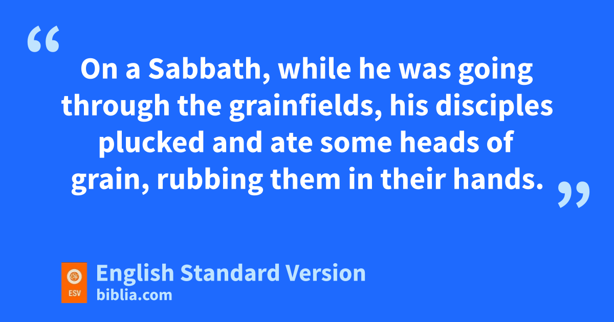 6 sOn a Sabbath,1 while he was going through the grainfields, his disciples tplucked and ate some heads of grain, rubbing them in their hands. 2 But some of the Pharisees said, u“Why are you doing vwhat is not lawful to do on the Sabbath?” 3 And Jesus answered them, w“Have you not read xwhat David did when he was hungry, he and those who were with him: 4 how he entered the house of God and took and ate ythe bread of the Presence, ywhich is not lawful for any but the priests to eat, and also gave it to those with him?” 5 And he said to them, z“The Son of Man is lord of the Sabbath.”