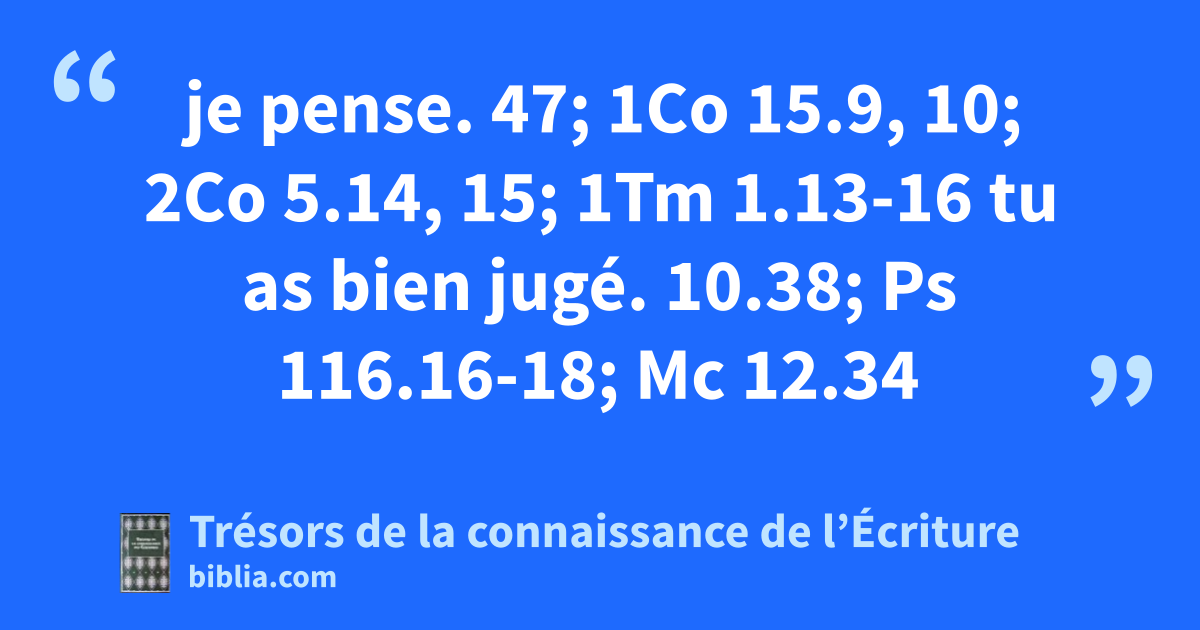 je pense. 47; 1Co 15.9, 10; 2Co 5.14, 15; 1Tm 1.13-16 tu as bien jugé. 10.38; Ps 116.16-18; Mc 12.34