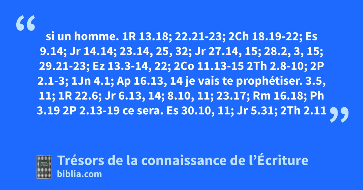 si un homme. 1R 13.18; 22.21-23; 2Ch 18.19-22; Es 9.14; Jr 14.14; 23.14, 25, 32; Jr 27.14, 15; 28.2, 3, 15; 29.21-23; Ez 13.3-14, 22; 2Co 11.13-15 2Th 2.8-10; 2P 2.1-3; 1Jn 4.1; Ap 16.13, 14 je vais te prophétiser. 3.5, 11; 1R 22.6; Jr 6.13, 14; 8.10, 11; 23.17; Rm 16.18; Ph 3.19 2P 2.13-19 ce sera. Es 30.10, 11; Jr 5.31; 2Th 2.11