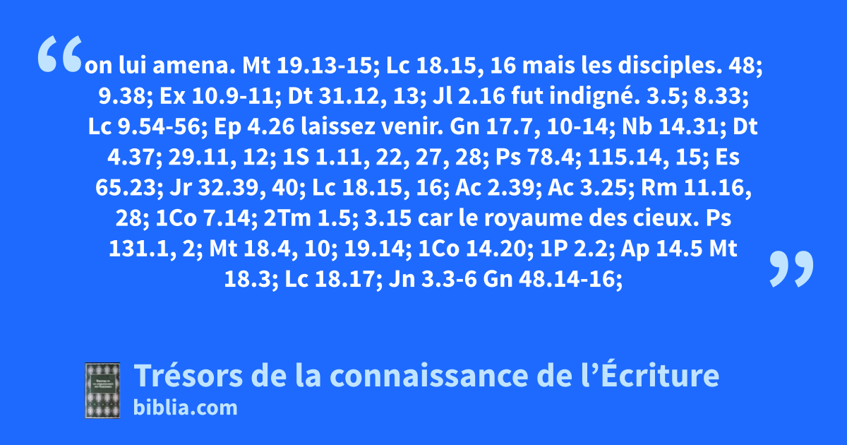 on lui amena. Mt 19.13-15; Lc 18.15, 16 mais les disciples. 48; 9.38; Ex 10.9-11; Dt 31.12, 13; Jl 2.16