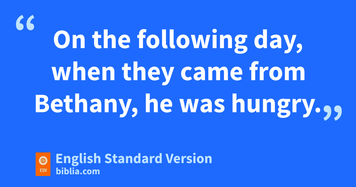 12 wOn the following day, when they came from Bethany, xhe was hungry. 13 yAnd seeing in the distance a fig tree in leaf, he went to see if he could find anything on it. When he came to it, he found nothing but leaves, for zit was not the season for figs. 14 And he said to it, “May no one ever eat fruit from you again.” And his disciples heard it.