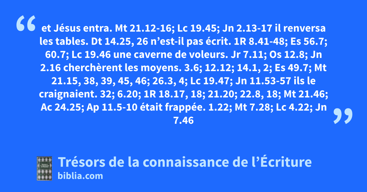 et Jésus entra. Mt 21.12-16; Lc 19.45; Jn 2.13-17 il renversa les tables. Dt 14.25, 26
