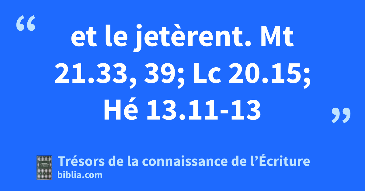 et le jetèrent. Mt 21.33, 39; Lc 20.15; Hé 13.11-13