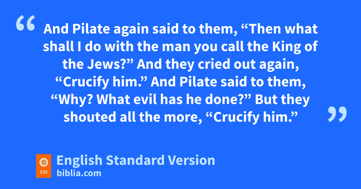 6 mNow at the feast he used to release for them one prisoner for whom they asked. 7 And among the rebels in prison, who had ncommitted murder oin the insurrection, there was a man called Barabbas. 8 And the crowd came up and began to ask Pilate to do as he usually did for them. 9 And he answered them, saying, “Do you want me to release for you the King of the Jews?” 10 For he perceived that pit was out of envy that the chief priests had delivered him up. 11 But the chief priests stirred up the crowd to have him release for them Barabbas instead. 12 And Pilate again said to them, “Then what shall I do with qthe man you call the King of the Jews?” 13 And they cried out again, “Crucify him.” 14 And Pilate said to them, “Why? rWhat evil has he done?” But they shouted all the more, “Crucify him.” 15 So Pilate, wishing to satisfy the crowd, released for them Barabbas, and having sscourged1 Jesus, he delivered him to be crucified.