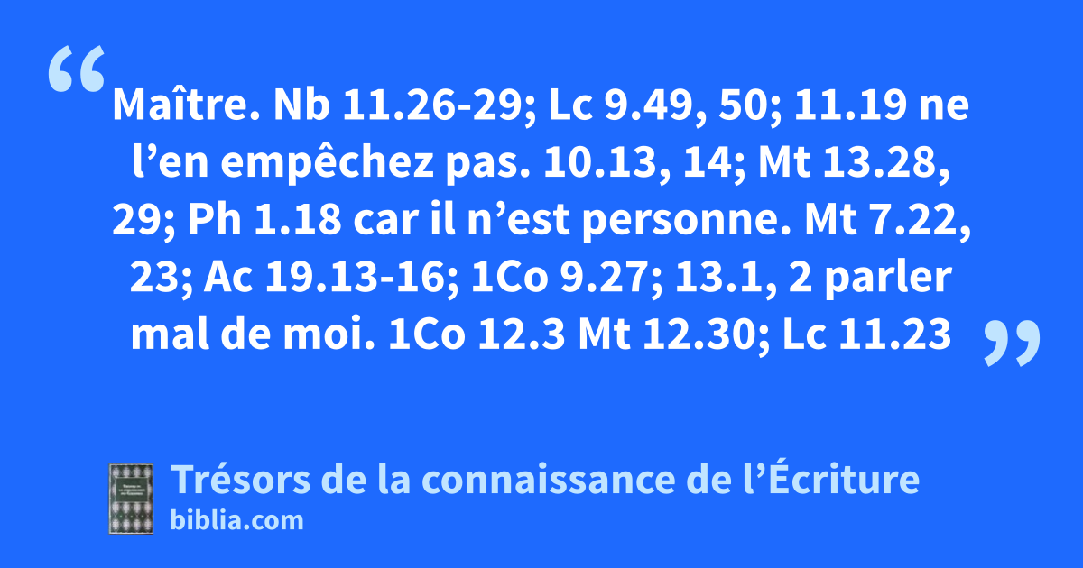 Maître. Nb 11.26-29; Lc 9.49, 50; 11.19