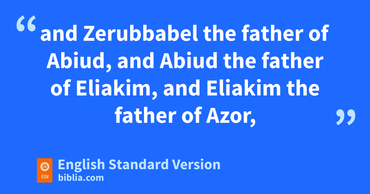12 And after the deportation to Babylon: pJechoniah was the father of qShealtiel,4 and rShealtiel the father of Zerubbabel, 13 and Zerubbabel the father of Abiud, and Abiud the father of Eliakim, and Eliakim the father of Azor, 14 and Azor the father of Zadok, and Zadok the father of Achim, and Achim the father of Eliud, 15 and Eliud the father of Eleazar, and Eleazar the father of Matthan, and Matthan the father of Jacob, 16 and Jacob the father of sJoseph the husband of Mary, of whom Jesus was born, who is called Christ.