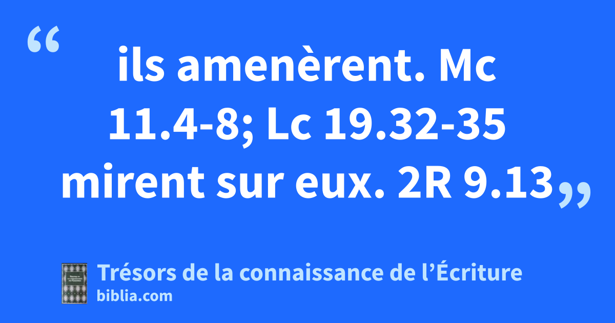 ils amenèrent. Mc 11.4-8; Lc 19.32-35 mirent sur eux. 2R 9.13
