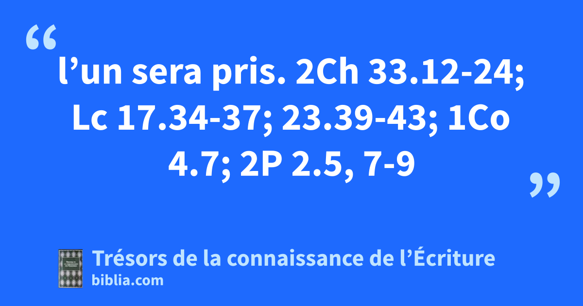 l’un sera pris. 2Ch 33.12-24; Lc 17.34-37; 23.39-43; 1Co 4.7; 2P 2.5, 7-9