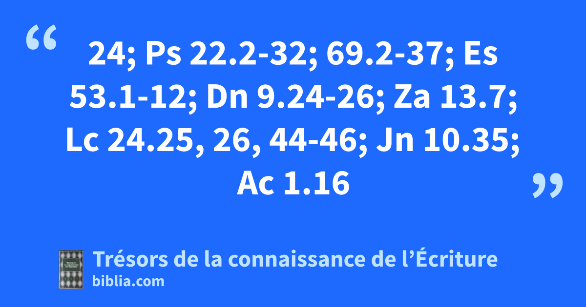 24; Ps 22.2-32; 69.2-37; Es 53.1-12; Dn 9.24-26; Za 13.7; Lc 24.25, 26, 44-46; Jn 10.35; Ac 1.16