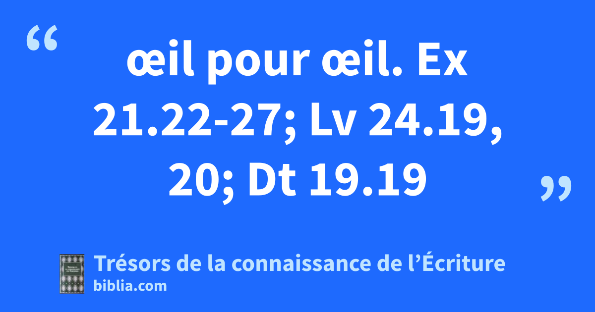 œil pour œil. Ex 21.22-27; Lv 24.19, 20; Dt 19.19