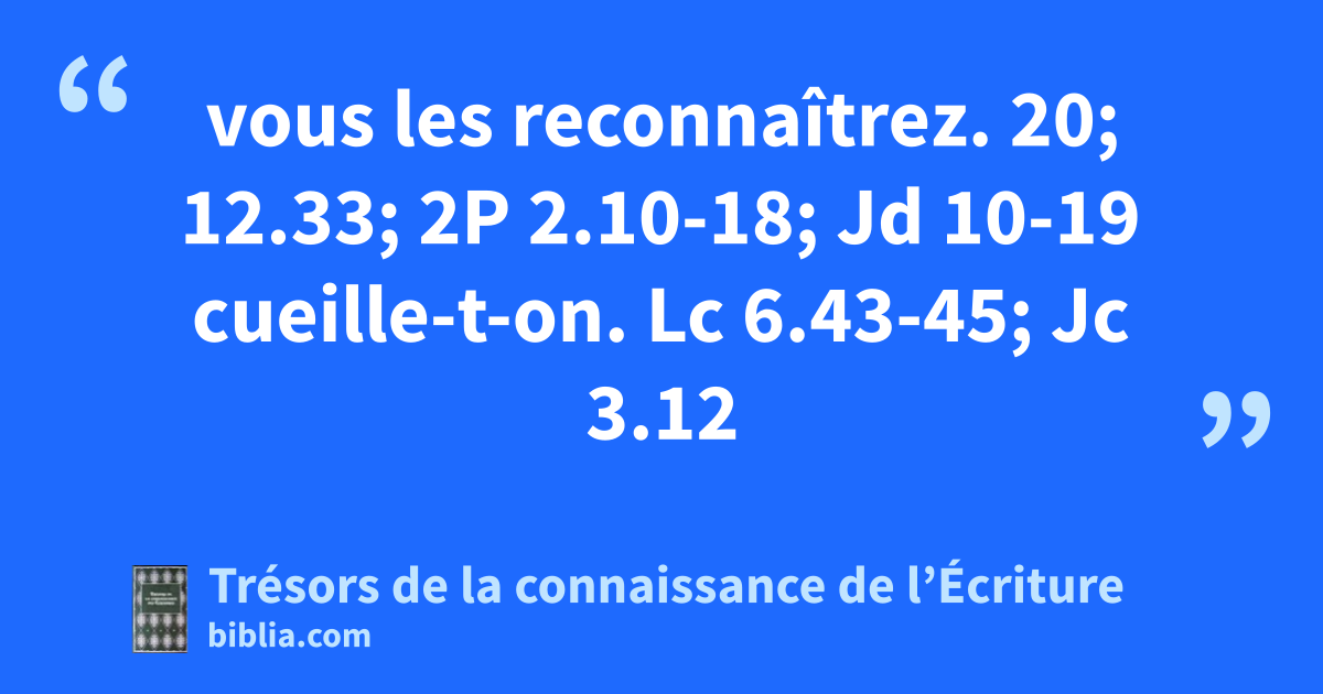 vous les reconnaîtrez. 20; 12.33; 2P 2.10-18; Jd 10-19 cueille-t-on. Lc 6.43-45; Jc 3.12