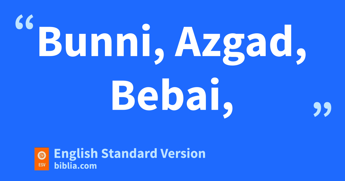 10 1 e“On the seals are the names of2 Nehemiah fthe governor, gthe son of Hacaliah, Zedekiah, 2 hSeraiah, Azariah, Jeremiah, 3 Pashhur, Amariah, Malchijah, 4 iHattush, Shebaniah, Malluch, 5 Harim, Meremoth, Obadiah, 6 Daniel, Ginnethon, Baruch, 7 Meshullam, Abijah, Mijamin, 8 Maaziah, Bilgai, Shemaiah; these are the priests. 9 And the Levites: jJeshua the son of Azaniah, Binnui of the sons of kHenadad, Kadmiel; 10 and their brothers, Shebaniah, Hodiah, Kelita, Pelaiah, Hanan, 11 Mica, Rehob, Hashabiah, 12 Zaccur, Sherebiah, Shebaniah, 13 Hodiah, Bani, Beninu. 14 The chiefs of the people: lParosh, Pahath-moab, Elam, Zattu, Bani, 15 Bunni, Azgad, Bebai, 16 Adonijah, Bigvai, Adin, 17 Ater, Hezekiah, Azzur, 18 Hodiah, Hashum, Bezai, 19 Hariph, Anathoth, Nebai, 20 Magpiash, Meshullam, Hezir, 21 Meshezabel, Zadok, Jaddua, 22 Pelatiah, Hanan, Anaiah, 23 Hoshea, Hananiah, Hasshub, 24 Hallohesh, Pilha, Shobek, 25 Rehum, Hashabnah, Maaseiah, 26 Ahiah, Hanan, Anan, 27 Malluch, Harim, Baanah.