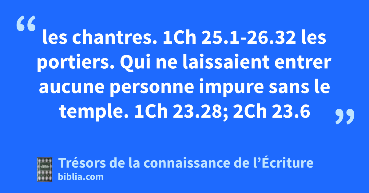 les chantres. 1Ch 25.1-26.32 les portiers. Qui ne laissaient entrer aucune personne impure sans le temple. 1Ch 23.28; 2Ch 23.6