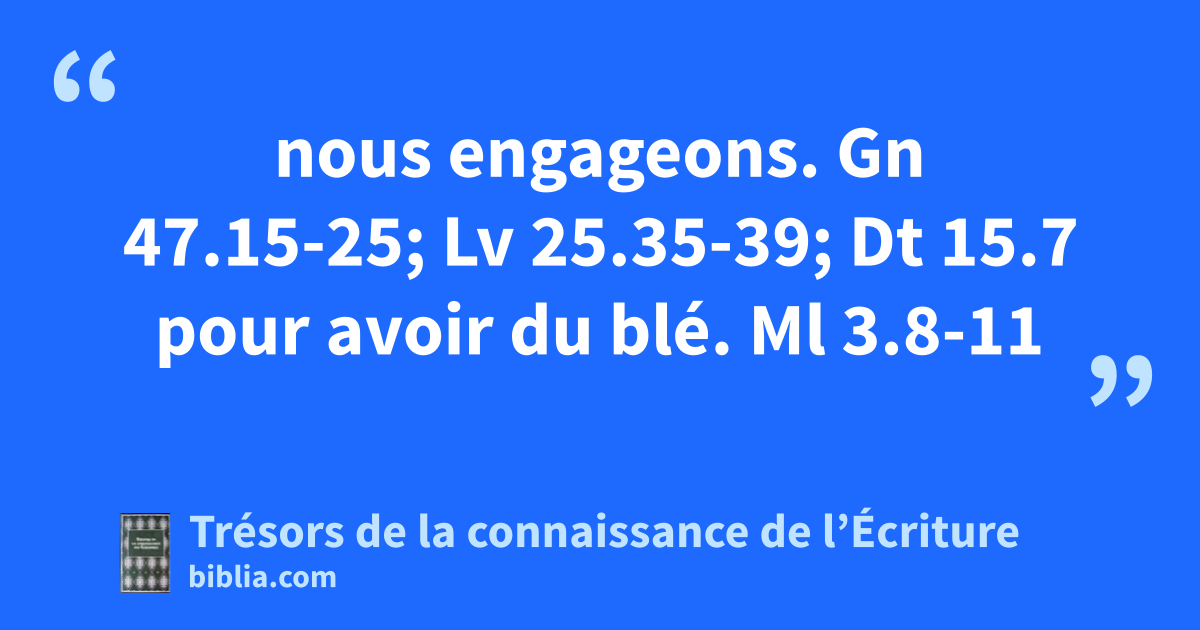 nous engageons. Gn 47.15-25; Lv 25.35-39; Dt 15.7 pour avoir du blé. Ml 3.8-11