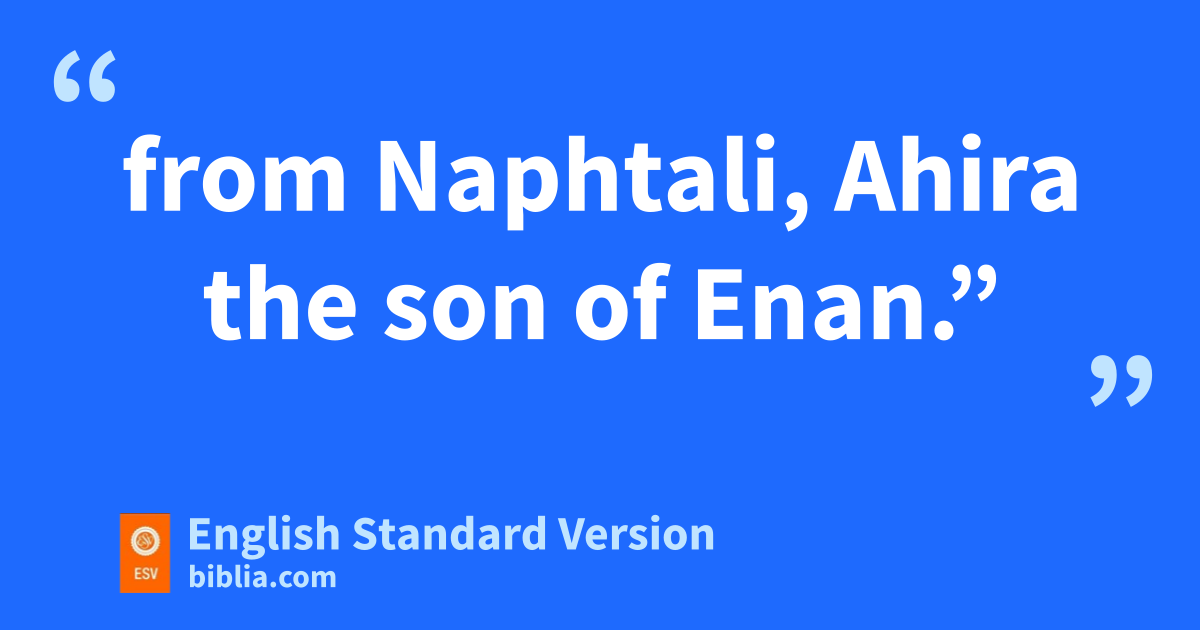 1 The Lord spoke to Moses ain the wilderness of Sinai, bin the tent of meeting, on the first day of the second month, in the second year after they had come out of the land of Egypt, saying, 2 c“Take a census of all the congregation of the people of Israel, by clans, dby fathers’ houses, according to the number of names, every male, head by head. 3 eFrom twenty years old and upward, all in Israel who are able to go to war, you and Aaron shall list them, fcompany by company. 4 And there shall be with you a man from each tribe, each man being the head of the house of his fathers. 5 And these are the names of the men who shall assist you. From Reuben, gElizur the son of Shedeur; 6 from Simeon, hShelumiel the son of Zurishaddai; 7 from Judah, iNahshon the son of Amminadab; 8 from Issachar, jNethanel the son of Zuar; 9 from Zebulun, kEliab the son of Helon; 10 from the sons of Joseph, from Ephraim, lElishama the son of Ammihud, and from Manasseh, mGamaliel the son of Pedahzur; 11 from Benjamin, nAbidan the son of Gideoni; 12 from Dan, oAhiezer the son of Ammishaddai; 13 from Asher, pPagiel the son of Ochran; 14 from Gad, Eliasaph the son of qDeuel; 15 from Naphtali, rAhira the son of Enan.” 16 These were the ones schosen from the congregation, tthe chiefs of their ancestral tribes, the heads of the clans of Israel.
