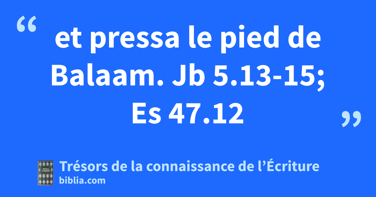 et pressa le pied de Balaam. Jb 5.13-15; Es 47.12