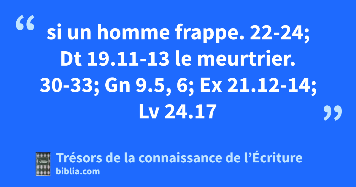 si un homme frappe. 22-24; Dt 19.11-13 le meurtrier. 30-33; Gn 9.5, 6; Ex 21.12-14; Lv 24.17
