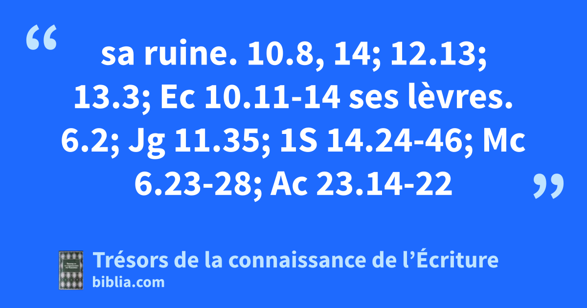 sa ruine. 10.8, 14; 12.13; 13.3; Ec 10.11-14 ses lèvres. 6.2; Jg 11.35; 1S 14.24-46; Mc 6.23-28; Ac 23.14-22
