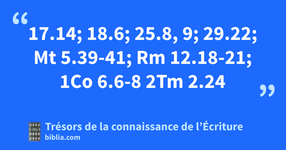 17.14; 18.6; 25.8, 9; 29.22; Mt 5.39-41; Rm 12.18-21; 1Co 6.6-8 2Tm 2.24