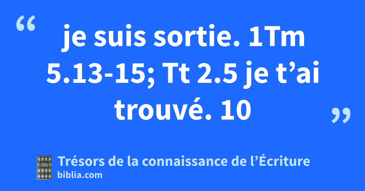je suis sortie. 1Tm 5.13-15; Tt 2.5 je t’ai trouvé. 10