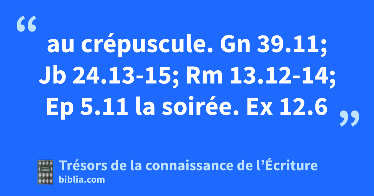 au crépuscule. Gn 39.11; Jb 24.13-15; Rm 13.12-14; Ep 5.11 la soirée. Ex 12.6