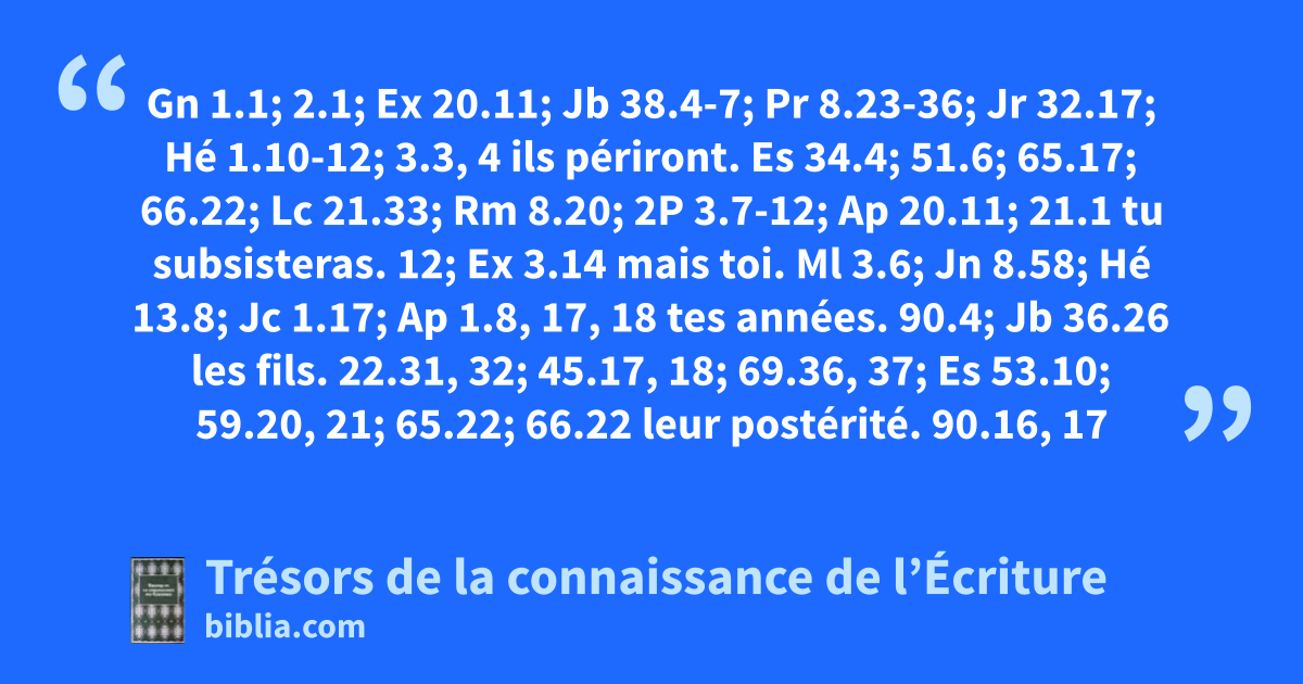 Gn 1.1; 2.1; Ex 20.11; Jb 38.4-7; Pr 8.23-36; Jr 32.17; Hé 1.10-12; 3.3, 4