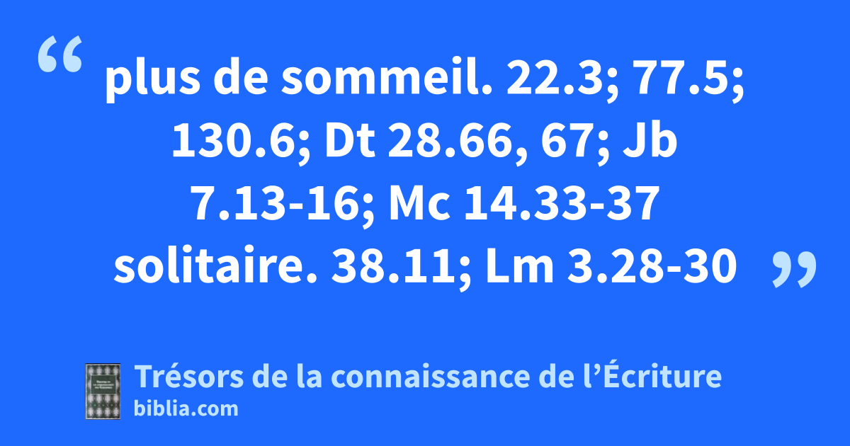 plus de sommeil. 22.3; 77.5; 130.6; Dt 28.66, 67; Jb 7.13-16; Mc 14.33-37 solitaire. 38.11; Lm 3.28-30