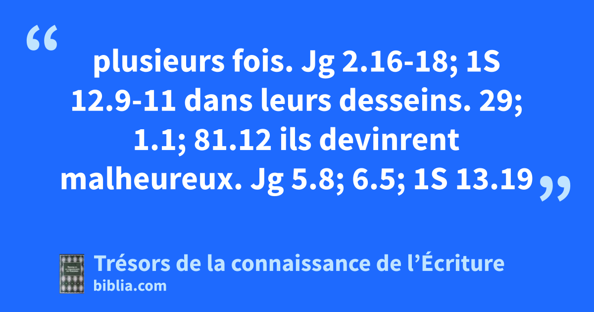 plusieurs fois. Jg 2.16-18; 1S 12.9-11 dans leurs desseins. 29; 1.1; 81.12 ils devinrent malheureux. Jg 5.8; 6.5; 1S 13.19