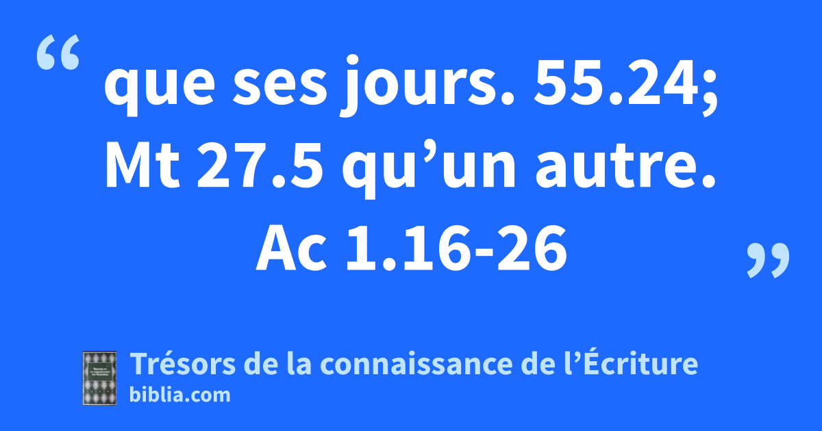que ses jours. 55.24; Mt 27.5 qu’un autre. Ac 1.16-26
