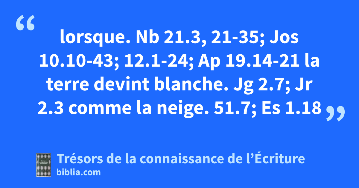 lorsque. Nb 21.3, 21-35; Jos 10.10-43; 12.1-24; Ap 19.14-21 la terre devint blanche. Jg 2.7; Jr 2.3 comme la neige. 51.7; Es 1.18