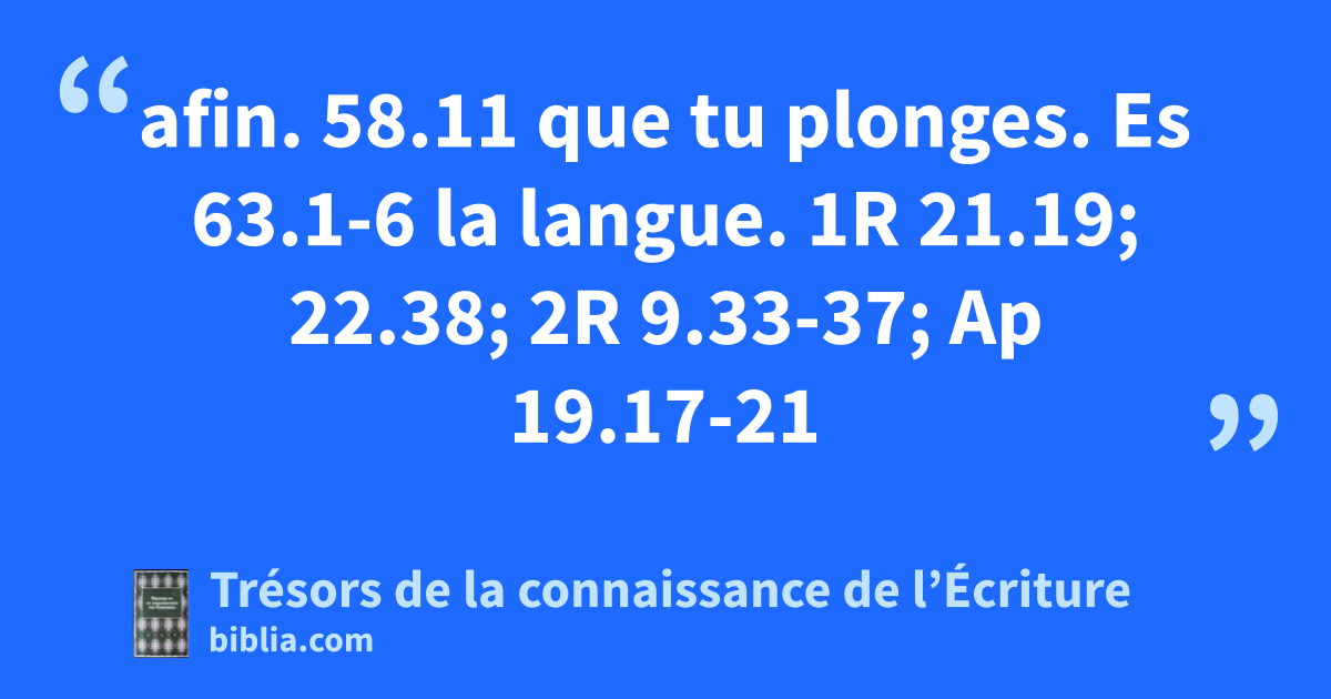 afin. 58.11 que tu plonges. Es 63.1-6 la langue. 1R 21.19; 22.38; 2R 9.33-37; Ap 19.17-21