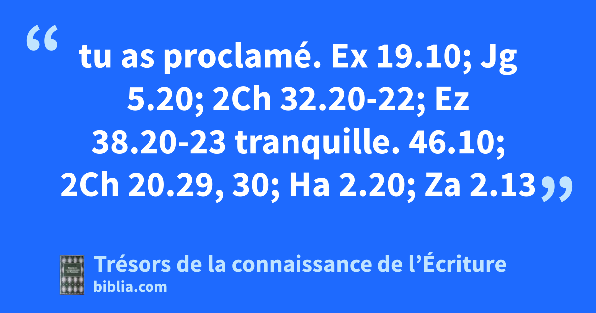 tu as proclamé. Ex 19.10; Jg 5.20; 2Ch 32.20-22; Ez 38.20-23 tranquille. 46.10; 2Ch 20.29, 30; Ha 2.20; Za 2.13